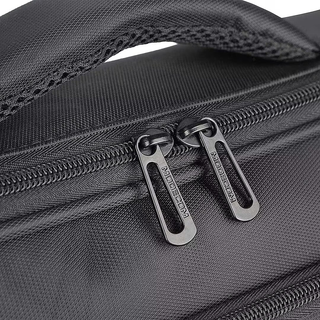 Description - Boston High-quality workmanship, a strong, soft and comfortable handle and practical solutions translate into a good start to every day. Comfortable handle with breathable mesh. Space for a 15.6-inch laptop. Polyester material. Minimalist, elegant design with a red decorative element. Large main compartment for a laptop and documents. Two pockets for utensils or accessories inside the bag. Zippers. Reinforced material around the bag increases the rigidity of the structure and the safety of the laptop. Detachable and adjustable shoulder strap. External pocket closed with a zipper. Travel bag strap. When the day begins Regardless of whether your day starts with a quick trip to work due to a long nap, or maybe a quiet and lazy exit from the apartment on the way to school, it is always worth having everything at hand! This is where the MODECOM Boston bag comes in handy - it allows you to pack your laptop and go safely to the office or school. High-quality workmanship, a strong, soft and comfortable handle and practical solutions translate into a good start to every day. Soft handle You've probably carried heavy things in a bag many times, and more than once the handle dug into your hands, causing discomfort. In the MODECOM Boston bag you will find a wide and soft handle covered with a breathable material in the lower part that comes into contact with the fingers. Thanks to this, the weight of a heavy bag is perfectly distributed on the handle, minimizing the effect of it digging into the fingers and hand. Quality and safety Laptop security is very important. After all, it is the contents of the bag that are most valuable. That is why we have used proven and reliable solutions for the safe transport of the bag. We know that you expect not only quality and interesting design, but also want to be sure that we have made every effort to ensure the best possible durability of the strap or handle. Waterproof polyester The bag is made of polyester. It is characterized by high durability and quick drying. Polyester is a material that does not absorb liquids, which means it does not absorb moisture and effectively protects the contents of the bag during light rain.