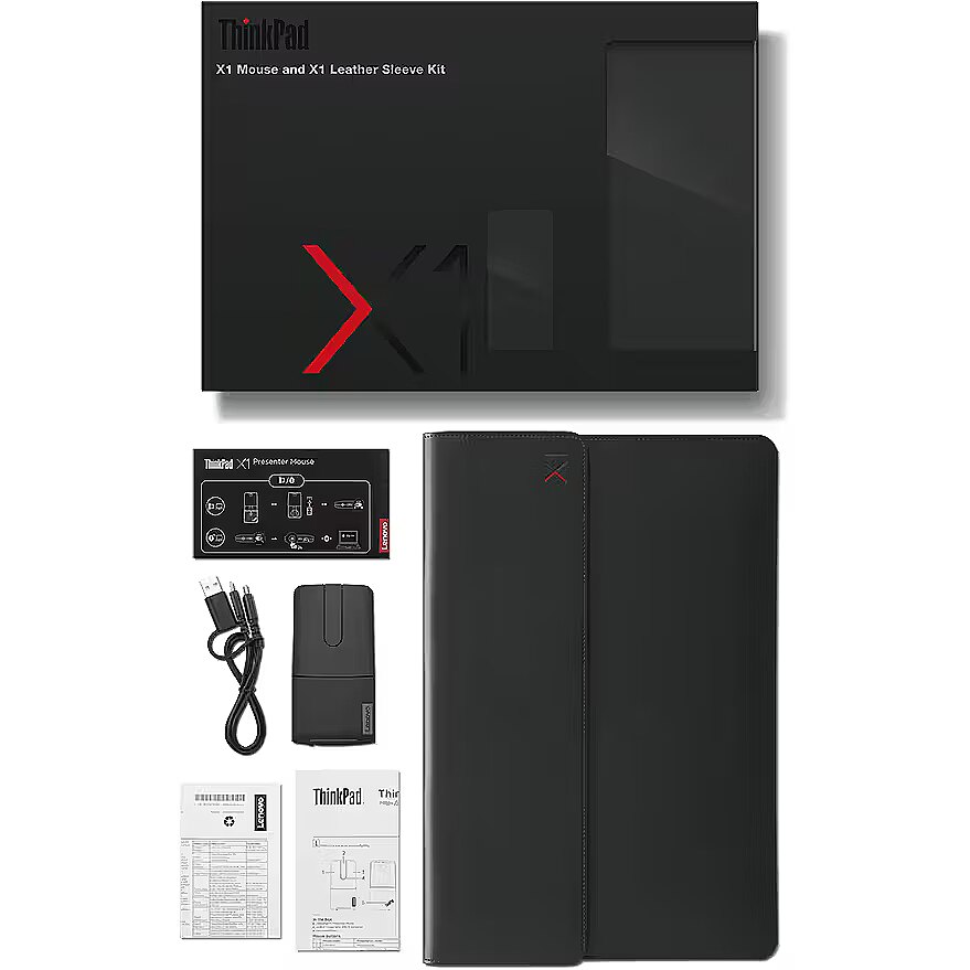 LongDesc - Get the convenience of the ThinkPad X1 Presenter Mouse and ThinkPad X1 Leather Sleeve with no hassle. The sleeve combines a clean, timeless form factor with functionality that modern professionals need. Thin enough to fit inside another bag to protect your laptop from scratches, this 14-inch sleeve is custom designed for your X1 Carbon. The mouse is a 2-in-1 accessory that combines the functionality of a mouse with a handy presenter.