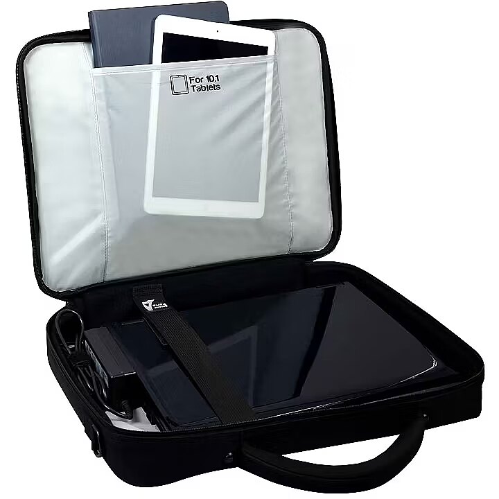 Īss apraksts - Clamshell soma, kas paredzēta 17,3'' klēpjdatora un planšetdatora pārnēsāšanai un aizsardzībai speciālos nodalījumos un kabatās.