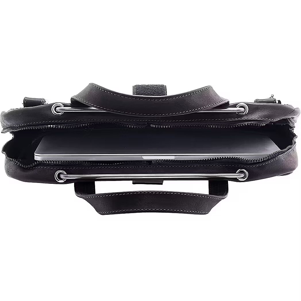 ProductName - Laptop bag R-Go Viva, full-grain leather, with integrated laptop stand, shoulder strap, 15.6-inch, black