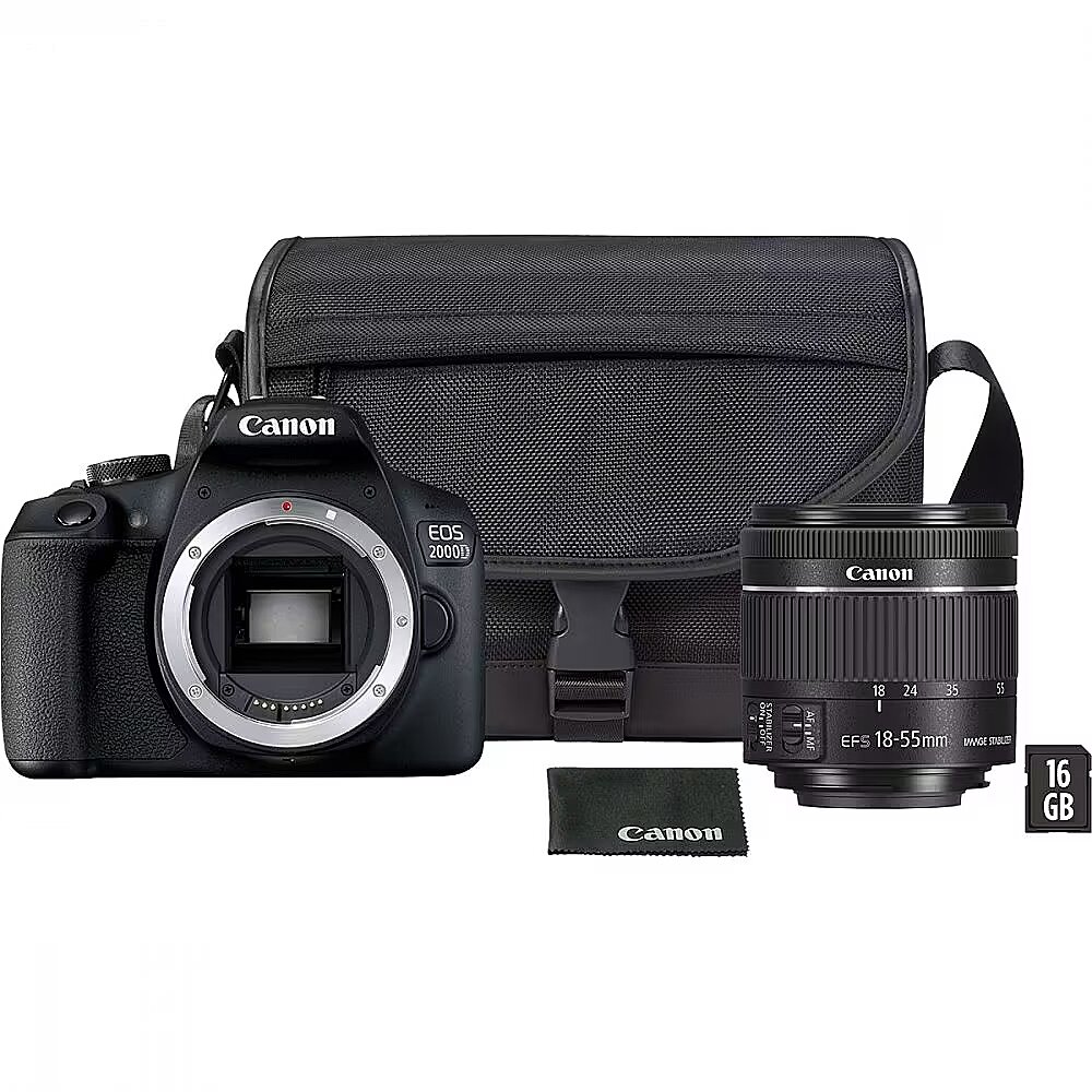 ShortSummaryDescription - Canon EOS 2000D BK 18-55 IS + SB130 +16GB EU26, 24.1 MP, 6000 x 4000 pixels, CMOS, Full HD, Black