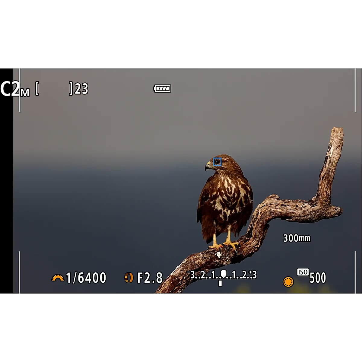 Citi displeja parametri - Krāsains OLED elektroniskais skatu meklētājs, 0,39 collas Punktu skaits: 2,36 miljoni punktu (1024 × 768) Pārklājums (vertikāli/horizontāli): Aptuveni 100 % palielinājums: Aptuveni 1,15x Acu punkts: aptuveni 22 mm (-1 m attālumā no okulāra objektīva gala) Dioptrijas korekcija: (dioptrijas) Displeja veiktspēja: no -4 līdz +2 m M (dioptrijas): Enerģijas taupīšanas režīms: 59,94 kadri sekundē; vienmērīgs režīms: 119,98 kadri sekundē
