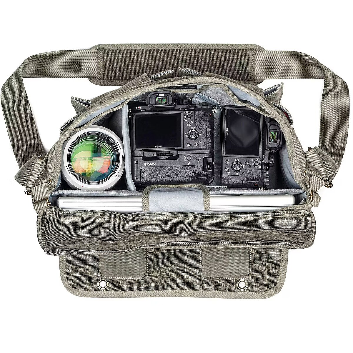 description_en - The Retrospective 30 V2.0 shoulder bag retains that classic look but includes many innovative new features. Keeping the soft, form-fitting design, they are lighter than the original. For greater security, we added a zippered opening under the main flap that tucks away when not in use. Soft and form-fitting with minimalist outer appearance Zippered opening to main compartment tucks-away when not in use Dedicated pocket fits a 9" tablet Luggage handle pass-through Collapsible water bottle pocket Hook-and-loop “Sound Silencers” offer discretion when needed Webbing rail to accommodate modular pouches or carabineer Additional dividers to sub-divide compartments for smaller lenses Organizer pocket Wide storage pocket on back Removable carrying handle Zippered pocket for valuables and small items Adjustable shoulder strap with cushioned non-slip pad Seam-sealed rain cover included What fits in this bag? 2 gripped DSLRs 70-200mm f/2.8 unattached 24–70mm f/2.8 attached 16–35mm f/2.8 attached Up to a 15” laptop Example: 2 Nikon D5 bodies with 14–24mm f/2.8 and 24–70mm f/2.8 attached, plus a 70–200mm f/2.8 unattached, iPad or 15” laptop
