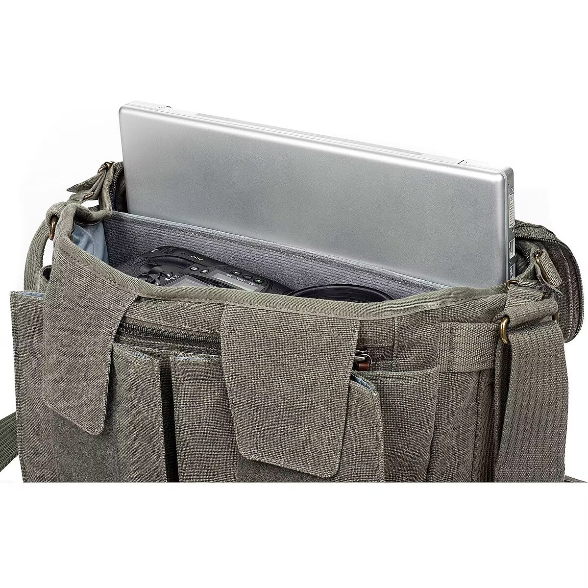 description_short_ru - Мягкая сумка через плечо для фототехникиВмещает две зеркальных фотокамеры с двумя объективамиКарман для ноутбука с диагональю экрана до 15 дюймовРегулируемые перегородки и дополнительные карманыРегулируемый плечевой ремень и удобная ручка