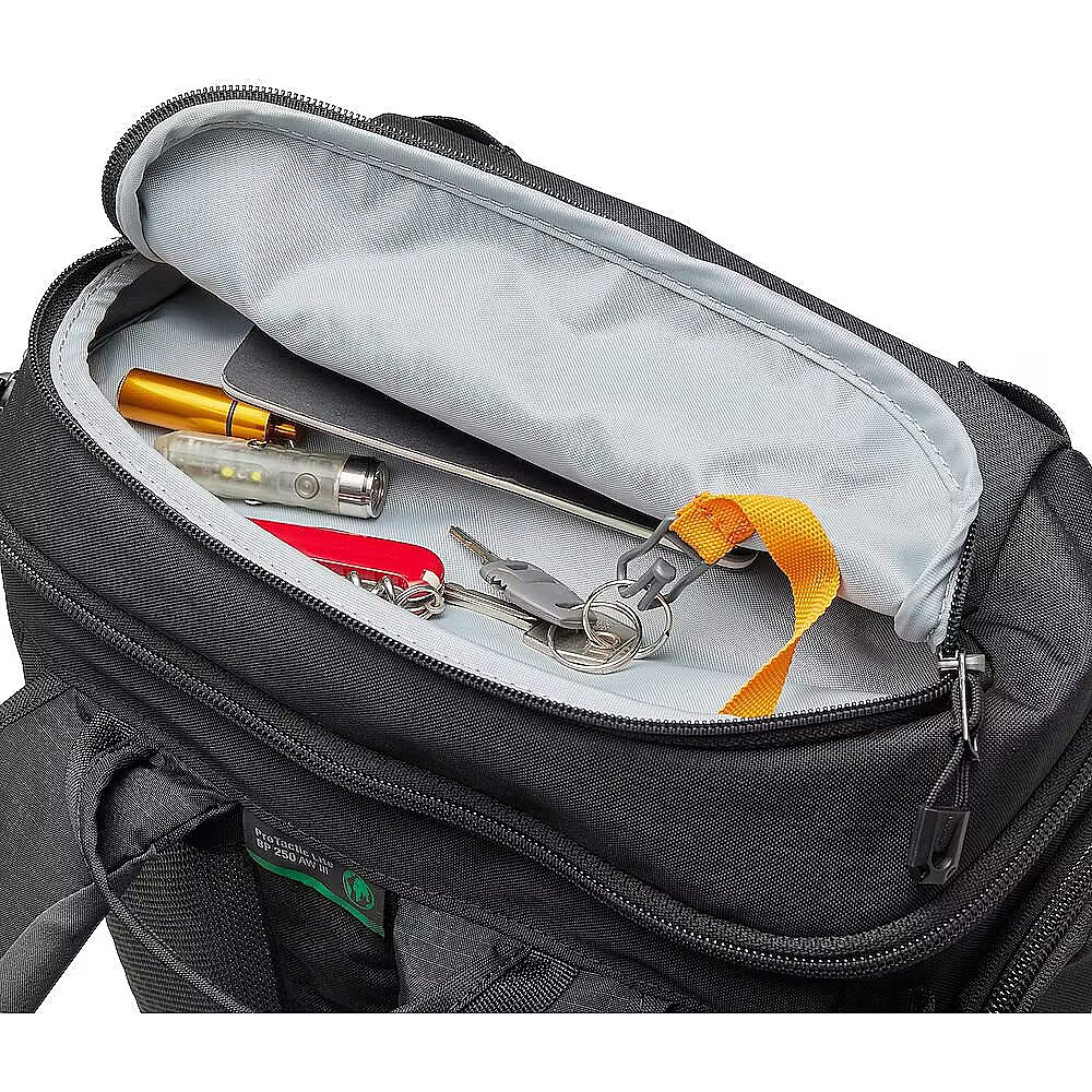 description_ru - Aprīkojumam var piekļūt no augšas un sāniemTransportē GearUp kameru futrāļus un ProTactic SLX somas (nopērkamas atsevišķi)Trīs ārējās elastīgās kabatas ūdens pudelei un statīvamSlīdošs organizators vertikālai iekšējai organizācijaiIzgatavots no 87% pārstrādāta auduma - izturība pārbaudīta laboratorijas un lauka apstākļosPielāgojams ikvienam brīdim ProTactic Lite BP 250 AW III ir daļa no Lowepro ProTactic III kolekcijas brīvajā laikā strādājošiem fotogrāfiem. Šī 30 litru mugursoma nodrošina izcilu pielāgojamību, jo tai ir sānu vai augšējā piekļuve galvenajai daļai, liela elastīga priekšējā kabata tādām lietām kā jakas un paplašināma sānu kabata ūdens pudelei vai statīvam. Hibrīda siksnu stiprinājuma sistēma ļauj izmantot SlipLock™ cilpas un standarta MOLLE vai PALS kabatas, savukārt komplektā iekļautais All Weather Cover™ pārvalks nodrošina aizsardzību jebkuros laika apstākļos. Inovatīva piekļuve un organizācija ProTactic Lite BP 250 AW III ir aprīkota ar lielām sānu durvīm, kas nodrošina pilnīgu piekļuvi iekšpusei, tostarp polsterētu CradleFit™ klēpjdatora kabatu, kurā var ievietot MacBook Pro līdz 16". Soma ir izstrādāta tā, lai to varētu papildināt ar iekšējām kabatām un organizatoriem, piemēram, GearUp vai ProTactic Lite SLX. Vertikāli regulējams vertikālais sadalītājs nodrošina pielāgojamu organizēšanu, savukārt augšējā kabata ar atslēgu siksniņu nodrošina ātru piekļuvi nepieciešamākajām lietām. Komforts un izturība ProTactic Lite BP 250 AW III ir veidota, lai nodrošinātu komfortu, un tai ir veidots etilēna vinila acetāta muguras panelis ar perforāciju un viļņotu rakstu gaisa plūsmas uzlabošanai, dubultā blīvuma siksnas un krūšu siksna SlideCam, kas nodrošina labāku piegulumu. Muguras panelī ir arī tunelis jostas jostai, lai uzlabotu slodzes sadalījumu. Mugursoma stāv pati par sevi, padarot to ērti lietojamu un ērti pieejamu jūsu aprīkojumam. Ilgtspēja un izturība Lowepro ir apņēmusies samazināt ietekmi uz vidi, ProTactic Lite BP 250 AW III mugursomā izmantojot līdz pat 87 % pārstrādātu audumu. Šiem materiāliem tiek veiktas plašas laboratorijas un lauka testēšanas, lai nodrošinātu to atbilstību veiktspējas un izturības prasībām, tādējādi radot izturīgu somu, kurai varat uzticēties. Šī soma ir būvēta tā, lai kalpotu ilgi, un tajā ir tādas maināmas detaļas kā AWC un krūšu siksna.