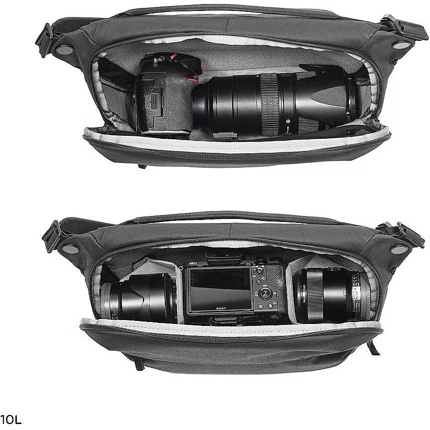 Peak Design Everyday Sling on loodud kohanemisvõimet silmas pidades. Sellel on reguleeritav polsterdatud õlarihm mugavaks käed-vabad kandmiseks, mida saab reguleerida nii vasaku kui ka parema õla jaoks. Lisaks saab turvalisuse ja mugavuse suurendamiseks kanda ümber rinna või vöökoha stabiliseerivat rihma. Sisemine korraldus