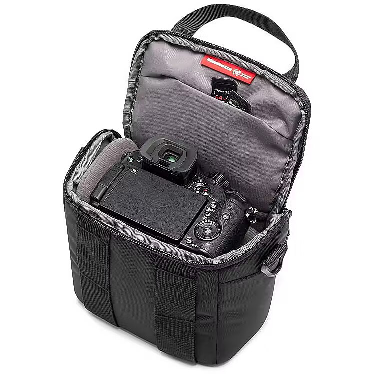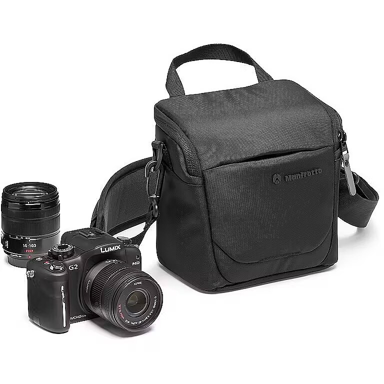 description_short_en - Comfortable Advanced series shoulder bag Fits a mirrorless camera with two lenses Extra pockets for smaller accessories Tripod attachment in the front Water repellent exterior & rain protector