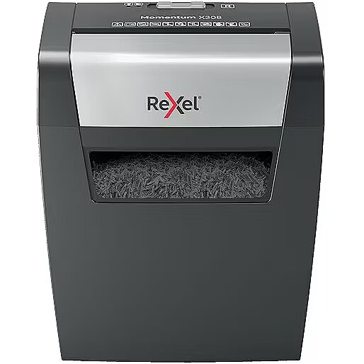 LongSummaryDescription - Rexel Momentum X308. Shredding type: Particle-cut shredding, Shredding size: 5 x 42 mm, Basket volume: 15 L. Width: 325 mm, Depth: 229 mm, Height: 343 mm