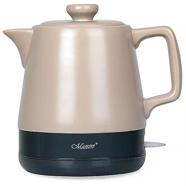 Description - The Maestro MR-071-BEIGE ceramic electric kettle is an elegant and practical device with a capacity of 1.0 liter, ideal for everyday use. With a power of 1200 W, the kettle boils water quickly, and its ceramic housing gives it a modern look and durability. The internal maximum water level indicator makes it easy to control the amount of liquid in the kettle.