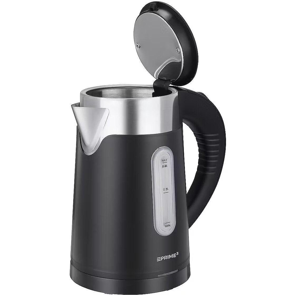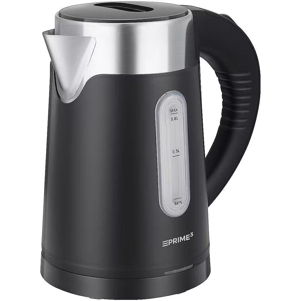 Description - Electric kettle SEK12 The PRIME3 electric kettle is perfect for the kitchen of anyone who values comfort of use, compact size and quality of equipment. Maximum power: 800 W Capacity 0.8 l Swivel base, flat bottom Made of high-quality stainless steel The PRIME3 electric kettle is perfect for the kitchen of anyone who values comfort of use, compact size and quality of equipment. The black, non-heating casing prevents accidental burns on the kettle, while the internal body made of high-quality stainless steel prevents the accumulation of scale in hard-to-reach places and makes it easier to clean. Automatic switch off after boiling The SEK12 model is a universal device for everyone, even the most demanding user. The optimal capacity of 0.8 l and the maximum power of 800 W guarantee quick boiling of water and water for the whole family. The kettle has a security system, i.e. automatic shutdown after boiling or protection against boiling without water. This will avoid many dangerous situations resulting from overheating. The SEK12 model is equipped with a high-quality hole filter that will ensure that the resulting sediment does not get into our drink. Swivel base and flat bottom Comfort during use is complemented by a profiled spout, thanks to which not a single drop will spill when pouring water, as well as a rotating base, a flat bottom and a water level indicator, which allows the user to control the amount of water in the kettle.