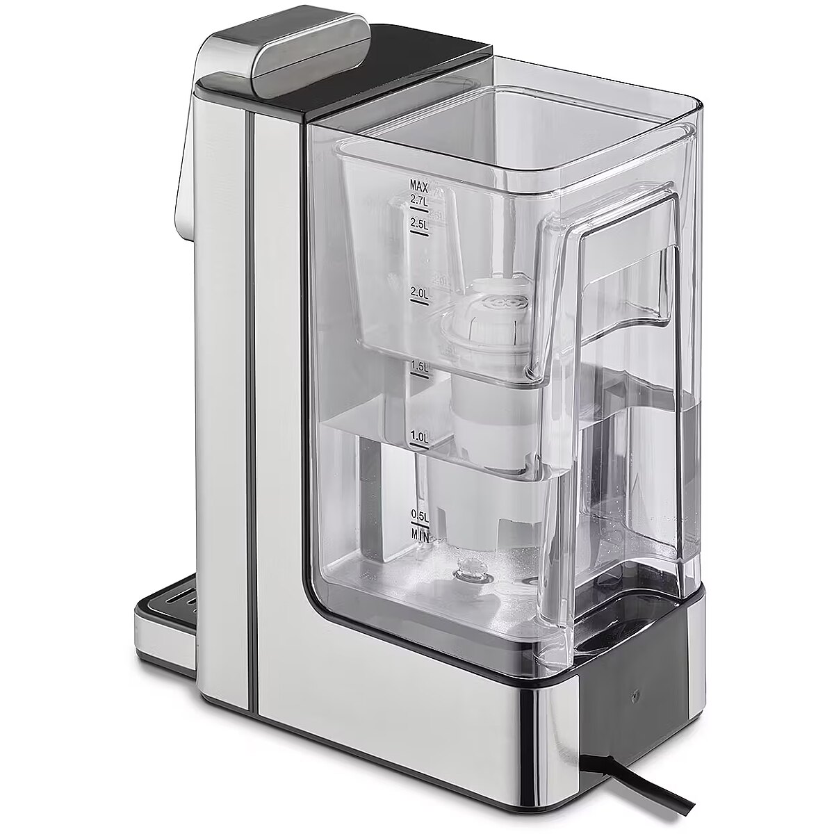 LongDescription ET - Ātrums un ērtības vienā Izbaudiet karstos dzērienus rekordīsā laikā, pateicoties Hot 7 turbo tehnoloģijai, kas uzsilda ūdeni līdz vēlamajai temperatūrai tikai 7 sekundēs. Jūs ietaupīsiet līdz pat 50 % enerģijas, salīdzinot ar parastajiem tējkannām. Viedas funkcijas ikdienas ērtībām Intuitīvais skārienekrāns un ērts atkaļķošanas atgādinājums atvieglo lietošanu. Noņemamā 2,7 litru ūdens tvertne un komplektā iekļautais ūdens filtrs nodrošina vienkāršu apkopi un tīra ūdens kvalitāti. Elegantā nerūsējošā tērauda apdare ir ideāli piemērota jebkurai virtuvei. - Energoefektīvs: līdz pat 50 % mazāks enerģijas patēriņš salīdzinājumā ar parasto tējkannu - Taupīgs laiks: karsts ūdens dažu sekunžu laikā, pateicoties 2600 W jaudai - Priekšējais skārienekrāns - vienkārša un intuitīva lietošana - Iebūvēts atkaļķošanas atgādinājums - Iekļauts ūdens filtrs tīra ūdens kvalitātes nodrošināšanai - Ideāli piemērots tējas, šķīstošās kafijas un makaronu pagatavošanai - Eleganta nerūsējošā tērauda apdare.