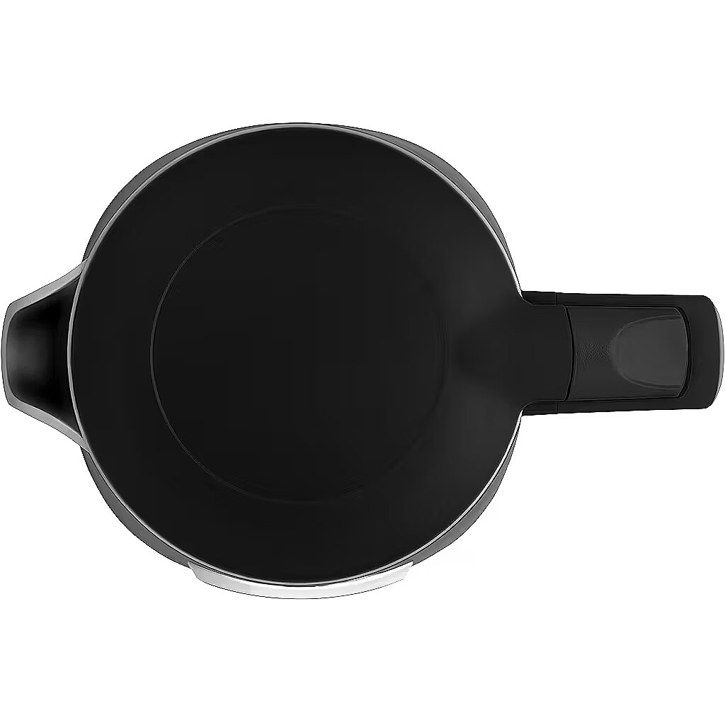 Czajnik jest wyposażony w praktyczny przycisk do łatwego otwierania pokrywy jednym naciśnięciem, co znacznie ułatwia jego napełnianie wodą. Gładkie dno z ukrytą grzałką minimalizuje osadzanie się kamienia i zanieczyszczeń. W pełni obrotowa podstawa umożliwia wygodne ustawienie czajnika z dowolnej strony, a jednocześnie zapewnia miejsce do przechowywania nadmiaru przewodu, dzięki czemu blat kuchenny pozostaje przejrzysty i uporządkowany. Markowy konektor zapewnia długą żywotność
