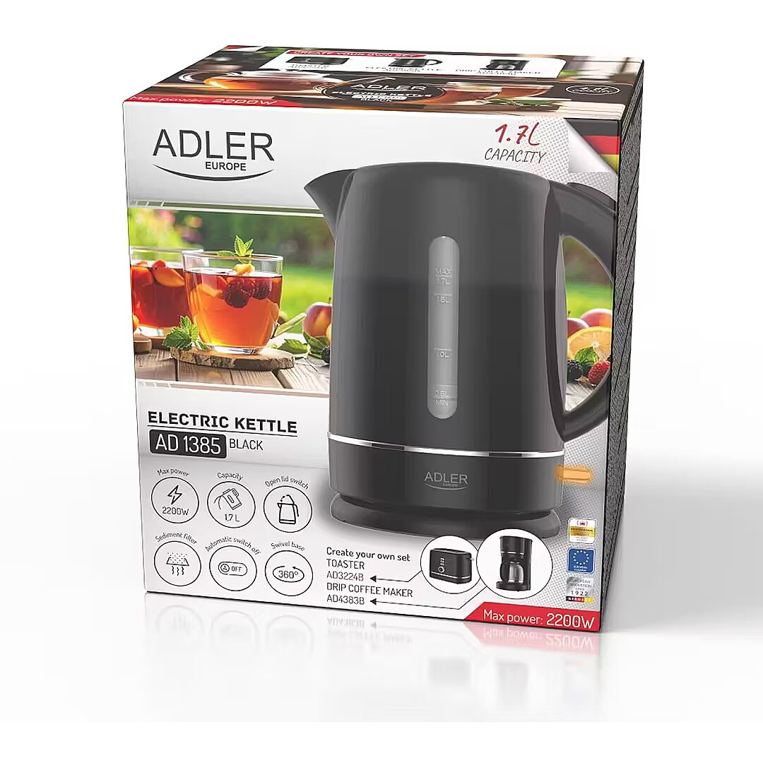 productName - ADLER 1385B BLACK WHITE ELECTRIC KETTLE
