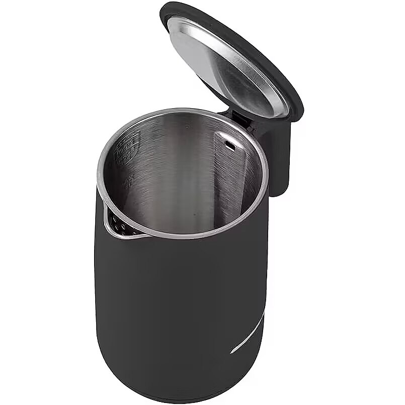 Apraksts - Maestro MR-037-BLACK elektriskā tējkanna ir ideāls risinājums cilvēkiem, kuri novērtē stilu un funkcionalitāti. Tā elegantais melnais plastmasas korpuss un dubultās sieniņas nodrošina ne tikai estētisku izskatu, bet arī lietošanas drošību, aizsargājot pret applaucēšanos. Ar 1,7 litru ietilpību tējkanna ir ideāli piemērota gan mazām, gan lielām virtuvēm, ļaujot ātri uzvārīt ūdeni visai ģimenei vai viesiem. Ar 1800 vatu jaudu ūdens uzsilst vienā mirklī, ko novērtēs ikviens kaislīgs tējas vai kafijas cienītājs. Tējkanna ir aprīkota ar 304 nerūsējošā tērauda iekšējo daļu, kas nodrošina higiēnisku lietošanu un izturību. Turklāt 360 grādu grozāmā pamatne nodrošina ērtu lietošanu.