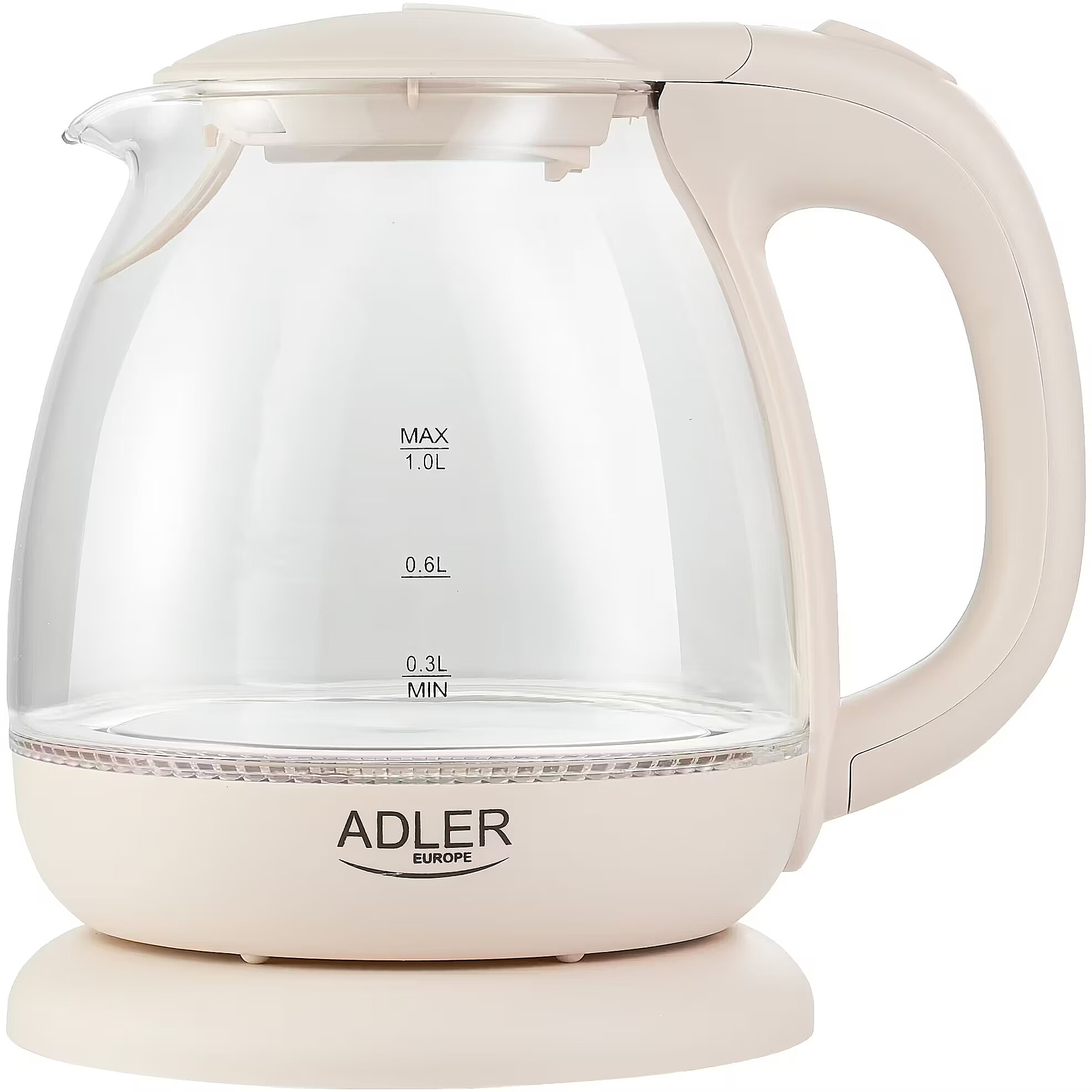 Name - Adler | Kettle | AD 1283C | Electric | 900 W | 1 L | Glass/Stainless steel | 360° rotational base | Cream