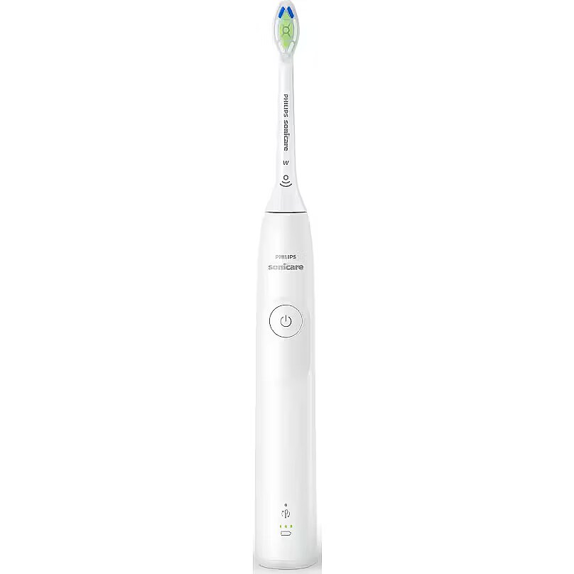 description_lv - Soniskā elektriskā zobu birste noņem līdz pat 7× vairāk aplikuma nekā manuālā zobu tīrīšana, izmantojot Next-Gen Sonicare tehnoloģiju. Divi intensitātes iestatījumi (augsts/zems), kas piemēroti parastiem vai jutīgiem zobiem. Iebūvēts spiediena sensors ar vibrāciju un pulsējošu skaņu brīdina, ja zobus tīriet pārāk intensīvi. Viedie taimeri: BrushPacer (ik pēc 30 s) un SmartTimer (2 min) nodrošina optimālu sesiju norisi. Komplektā iekļauta balinoša W2 birstes galviņa ar rombveida sariņiem. Ar vienu uzlādi var lietot līdz 21 dienai; darbojas ar litija jonu akumulatoru; uzlāde 100-240 V. Izmēri: garums 254 mm, platums 25 mm, dziļums 25 mm; svars 126 g.