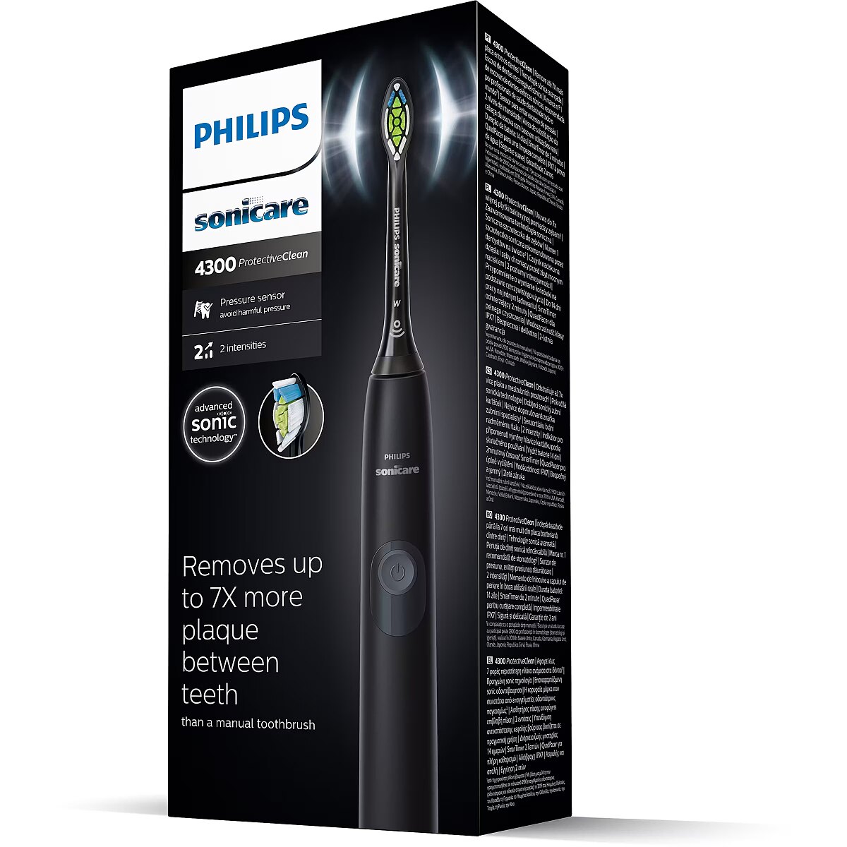 ShortSummaryDescription - Philips Sonicare ProtectiveClean 4300 Built-in pressure sensor Sonic electric toothbrush, Adult, Sonic toothbrush, Daily care, Deep clean, Gum care, Sensitive, Whitening, Black, Grey, 62000 movements per minute, 2 min