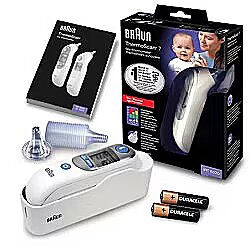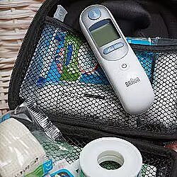 LongDesc - NEW Braun ThermoScan 7 with Age Precision IRT6520 Unique age-adjustable fever guidance technology takes the guesswork out of interpreting your child’s temperature!Clinical research shows that the definition of fever changes with a child’s age. What is a normal temperature in a four year old, can be a fever in a newborn. Age is the determining factor. To help you interpret your child’s temperature more confidently, we have developed the new Braun ThermoScan 7 (IRT6520) with patented Age Precision technology. Simply select your child’s age, take their temperature and the colour coded display will help you understand the temperature reading, based on the age of the child, and act accordingly.By selecting Braun ThermoScan 7, you are choosing the no.1 thermometer brand among doctors*. Thanks to its patented pre-warmed tip, Braun ThermoScan ear thermometers are already regarded as a benchmark for accuracy, and are widely used and endorsed by doctors around Europe. The tip on other thermometers can cool the area where the reading is taken, which can lead to inaccurate readings. The tip on the ThermoScan is warmed before use, to ensure professional accuracy. Plus, the ExacTemp guidance system confirms the correct position and accurate reading with a light and a beep. Now with new Age Precision technology Braun ThermoScan gives you even more reassurance when it comes to interpreting your child’s temperature. Discover all of the features of Braun ThermoScan 7 IRT6520.Why is the ear an excellent site to measure temperature?Braun ThermoScan measures the infrared heat generated by the eardrum and surrounding tissue. Infrared heat is the natural warmth emitted by our body. When the Braun ThermoScan IRT is placed in the ear, it continuously monitors the infrared heat emitted by the eardrum and surrounding tissue. Since the eardrum shares blood supply with the temperature control center in the brain, the ear accurately reflects the core body temperature. As a result, when the temperature rises, it is immediately detectable in the ear.Patented pre-warmed tip and ExacTemp technology for professional accuracyUnlike other thermometers, Braun ThermoScan ear thermometer features a patented pre-warmed tip that minimizes the cooling effect of a cool probe tip. Whereas the tip of other thermometers can cool the area within the ear where the temperature is being measured, resulting in variable or inaccurate readings, the patented pre-warmed tip on the ThermoScan is pre-warmed before use, to ensure professional accuracy that you can rely on, time and time again. The soft speculum and tip also ensures the thermometer is gentle and comfortable on a child’s ear. Plus, the ExacTemp guidance system confirms the correct position and accurate reading with a light and a beep.Suitable to take temperature for all agesThe probe of Braun ThermoScan was designed to avoid damaging the eardrum, regardless of the person’s age. Even though the probe does not fit into the ear canal of a new-born, clinical studies have confirmed that accurate temperature readings can still be obtained in this age group when the Braun ThermoScan is used very carefully.Age Precision takes away the guessworkClinical research shows that the definition of fever changes as newborns grow into little kids and little kids grow into adults. What is a fever in a newborn can be a normal temperature in a four year-old.Doctors know this, but many parents do not. To help you interpret your child’s temperature more confidently, based on the age of your child, Braun has developed unique Age Precision technology.In short, Age Precision helps you to interpret your child’s temperature taking into account their exact age. With new Age Precision, you get the accuracy and peace of mind you need.Taking temperature with Age Precision is easyWith new Age Precision technology, you can take and interpret the temperature of a child or any family member in three simple steps:Step 1Set your child’s age with the Age Precision button.Step 2Take the temperature.Step 3The colour coded fever indicator will help you understand and interpret the results and act accordingly – green (normal temperature), yellow (elevated temperature) and red (high temperature).What to do when the fever indicator shows green, yellow or red?If there are symptoms, such as unusual irritability, unresponsiveness, weakness, vomiting, diarrhea, dry skin, unusual thirst, seizure, loss of appetite, or changes in activity, you should contact a doctor regardless of whether the thermometer shows green, yellow, or red.If temperature readings are in the red range, you should speak with a doctor whether or not there are symptoms. Someone who has an elevated temperature in the yellow range and also feels sick (or appears to be sick), should speak with a doctor to find out whether or not to come into the medical office. You may choose not to consult a physician only if the indicator is green and there are no symptoms. When in doubt about the symptoms, always consult your physician.High fever in children should be a concern. High fever usually is a sign of infection, which can be either viral or bacterial. In young children, there is a chance that the infection can be meningitis or sepsis, both of which can be very serious. Very young babies may not have high fevers even when they have infections, so even a temperature that is only slightly higher than normal may be a sign of infection in an infant. In infants, even a small rise in temperature must be taken seriously. To be on the safe side, if temperature readings are elevated or high, especially if your child has symptoms along with fever, you should consult a doctor immediately. The doctor will ask about symptoms, because without symptoms even a high temperature may not be cause for alarm.