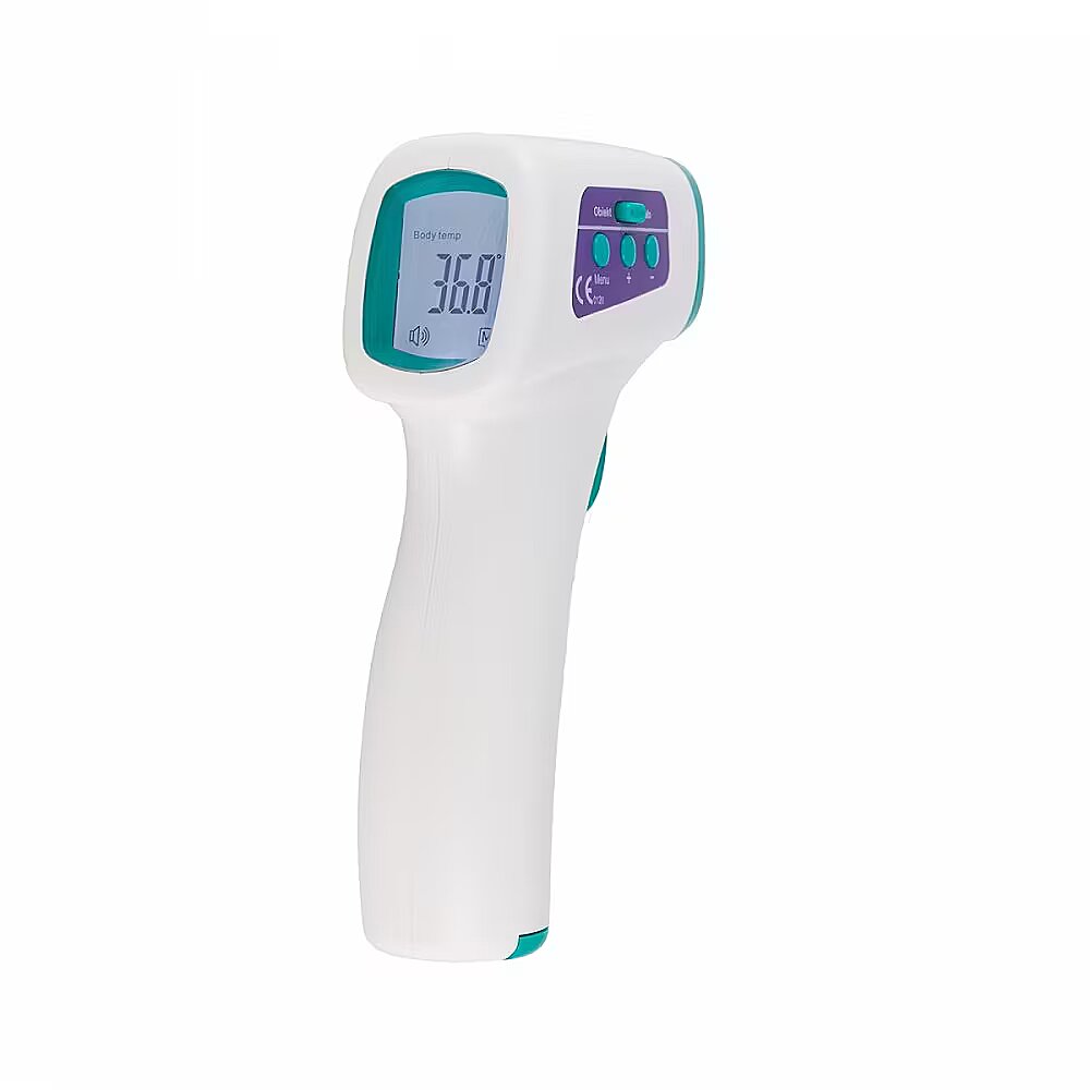 Apraksts - Mūsdienīgs termometrs ļauj izmērīt temperatūru bez ierīces kontakta ar ķermeni, kas garantē drošību un higiēnu. Ierīce nodrošina precīzu, uzticamu un tūlītēju temperatūras mērījumu. Pateicoties tā funkcionalitātei, to var izmantot arī virsmas temperatūras mērīšanai. Galvenās iezīmes: Precīzs, bezkontakta ķermeņa temperatūras un virsmas temperatūras mērījums, piemēram, ēdiena, šķidrumu, piemēram, piena pudelē, vannas ūdens Mērīšanas iespēja jebkurā ķermeņa vietā (ieteicams uz pieres vai aiz auss) Apgaismots displejs Mērīšanas laiks: 1 sekunde Pēdējo mērījumu atmiņa Pīkstiens pēc mērījuma Brīdinājums par augstu vai zemu temperatūru Kļūda mērījumā Iespēja iestatīt augstas temperatūras trauksmi - no kādas vērtības atskanēs brīdinājuma skaņas signāls Enerģijas taupīšanas režīms Automātiska izslēgšanās pēc 30 sek. Temperatūras mērīšana ° C un ° F Tam ir CE sertifikāts, ir veikta atbilstības novērtēšanas procedūra un tas atbilst būtiskajām prasībām drošības, veselības, vides un patērētāju aizsardzības jomā, reģistrēts Zāļu, medicīnas ierīču un biocīdo produktu reģistrācijas birojā kā medicīnas ierīce.