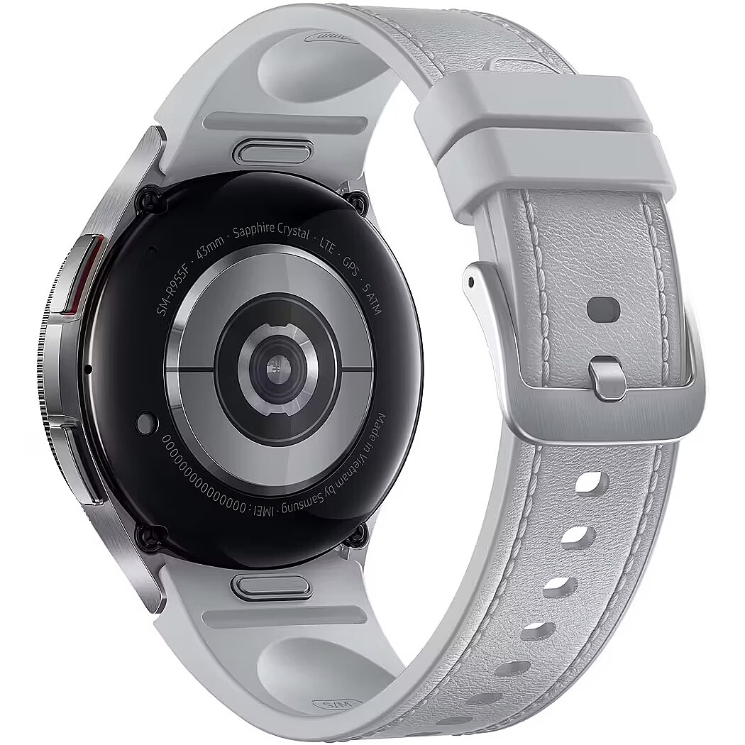 LongSummaryDescription - Samsung Galaxy Watch6 Classic LTE (43mm). Display diagonal: 3.3 cm (1.3"), Display technology: OLED, Display resolution: 432 x 432 pixels, Touchscreen. Processor frequency: 1.4 MHz, RAM capacity: 2000 MB, Flash memory: 16 GB. Wi-Fi. GPS (satellite). Battery capacity: 300 mAh. Weight: 52 g. Band colour: Silver. Operating system installed: Wear OS
