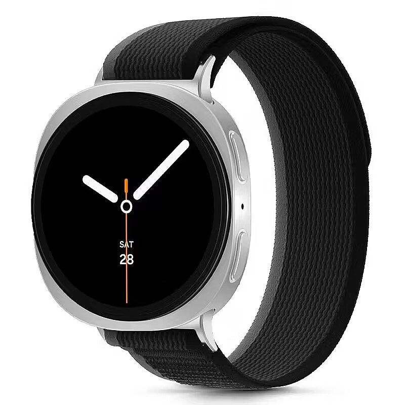 description_et - Ērta tekstila pulksteņa siksniņa Samsung Galaxy Watch viedpulksteņiem. Pielāgojiet savu viedpulksteni savam personīgajam stilam - izvēlieties mīļāko krāsu vai mainiet siksniņu atbilstoši savam garastāvoklim un apģērbam. Piemērots Samsung Galaxy Watch8 40 mm un 44 mm un Samsung Galaxy Watch8 Classic 46 mm korpusiem Izgatavots no tekstilmateriāla - ērts un elpojošs dizains Viegli regulējams dizains padara siksniņu piemērotu jebkuram plaukstas izmēram Viegli piestiprināmu un nomaināmu.