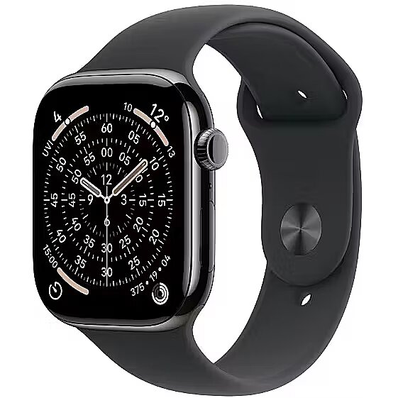 Nosaukums - Apple Watch Series 11 GPS + mobilais tīkls 42 mm slānekļa titāna korpuss | Melna sporta lenta - S/M