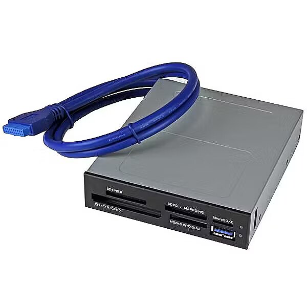 LongDesc - Turn a 3.5" internal bay on your computer into a fast and versatile memory card reader - for SD, Micro SD, CF, Memory Stick and moreNow, you can transfer large files like photos and 4K video, back up files or offload data, to and from your memory cards, at speeds like never before. This USB 3.0 internal multi-card reader supports UHS-II to greatly enhance your file transfer rates. The card reader supports High Capacity/eXtended Capacity cards and most standard memory cards, including SecureDigital®, Compact Flash®, Memory Stick® and micro SD cards. It also enables concurrent downloads. Fast speed and wide compatibility make this multi-card reader an ideal solution for photo kiosks or photo labs, and desktop computers.The card reader is USB powered so there’s no external power or battery required. Front USB access lets you connect USB devices easily.Transfer files quickly and easilyWith support of UHS-II cards, the multi-card reader lets you transfer large files to and from your memory cards at speeds of up to 312 MB/s, saving you time on data offloads of 4K, full HD and 3D videos.Using a USB 3.0 connection, also known as USB 3.1 Gen 1, the card reader supports fast file transfer speeds of up to 5 Gbps, enabling you to leverage the increased capabilities of new, higher performing memory cards.Access multiple cards - at the same timeSave time with concurrent downloads. This 5-slot multi-card reader design allows you to access up to four memory cards simultaneously for fast and easy file transfers.Read most standard memory cards from a single card readerThe USB 3.0 multi-card reader works with most standard memory cards, including:• Secure Digital (Standard Card, HC card, XC card, MMC, Mini SD with adapter)• Micro SD (Standard card, HC card, XC card)• Compact Flash (CF I or II, CF 6.0)• Memory Stick (Standard, Pro, Duo, Pro Duo, Pro-HG, XC, Micro MS with adapter)The 35FCREADBU3 is backed by a StarTech.com 2-year warranty and free lifetime technical support.The StarTech.com Advantage