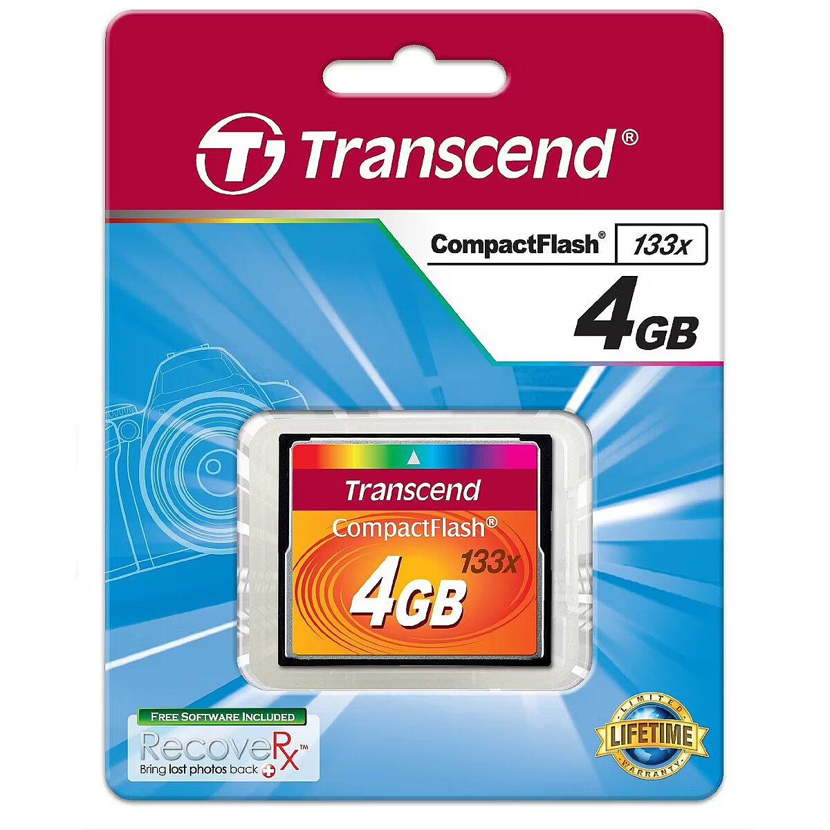 Technical_details - Transcend’s 133X CF card is designed for high-end digital cameras. It has passed strict testing with advanced high-resolution cameras from major camera brands such as Canon, Nikon, Olympus and Sony to ensure the highest level of quality, performance and reliability. Card Type CompactFlash I Storage Technology Flash Capacity 4 GB Speed Read 35 MB/s Write 25 MB/s Product dimensions 43 x 3 x 36 mm