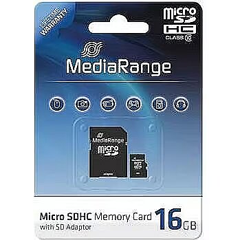 Description - MediaRange microSDHC™ memory card, Class 10, with SD adapter, 16GB MediaRange flash storage media are known for their extremely good quality and reliability. Our microSDHC memory cards are especially suited for use in portable devices like digital cameras, smartphones, tablet computers, navigation systems, music players and camcorders. The high speed transmission rates prevent delays when photographing, or when copying and downloading your digital data. We even include an adapter which allows you to use the card as an SD or microSD card. The adapter is compatible with all SDHC and SDXC devices and immediately ready for use.