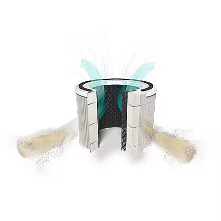 Technical details > Other features - HEPA+Activated carbon. 99,97% removal efficiency. Removes dust particles, odours and other dangerous substances from the air, such as fine dust (PM2.5, PM0.3, PM0.1), smog, pollen, cigarette smoke, viruses, bacteria, benzene and formaldehyde.