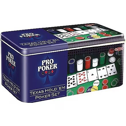 Apraksts - Poker Texas Hold'em in Pineapple Komplektā ietilpst: 60x90cm paklājiņš, 200 krāsaini žetoni, divas spēļu kārtis (kazino kvalitātes), žetonu padevējs, žetonu žetons, mazais žetons, tumšais žetons, spēles noteikumi. Spēles instrukcija poļu valodā pieejama www.tactic.net Brīdinājums: Šis produkts paredzēts pieaugušajiem. Brīdinājums: Komplekts nav paredzēts lietošanai ar naudu. Saskaņā ar 2009. gada 19. novembra Azartspēļu likumu šādas spēles drīkst spēlēt tikai kazino.