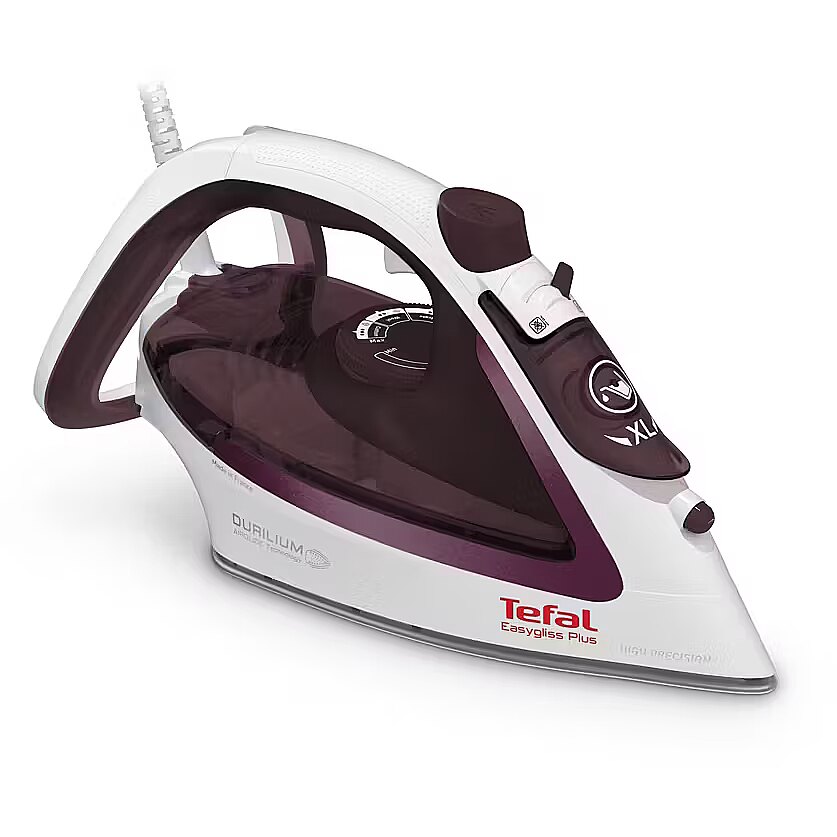 Nosaukums - Tefal EasyGliss Plus FV5714 gludeklis Dry & Steam Durilium soleplate 2400 W Bordeaux, balts