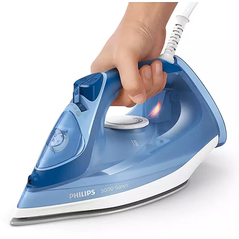 LongDesc - Steamboost up to 180gPowerful steam to tackle every creaseOur steam iron 3000 series makes ironing easy with the powerful steam boost that tackles tough creases.The ceramic soleplate ensures smooth gliding while the 300ml water tank is large enough to finish smaller ironing loads without a refill.