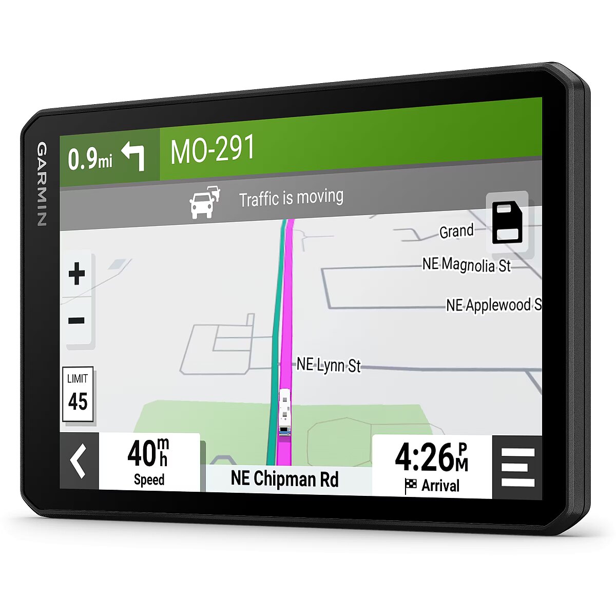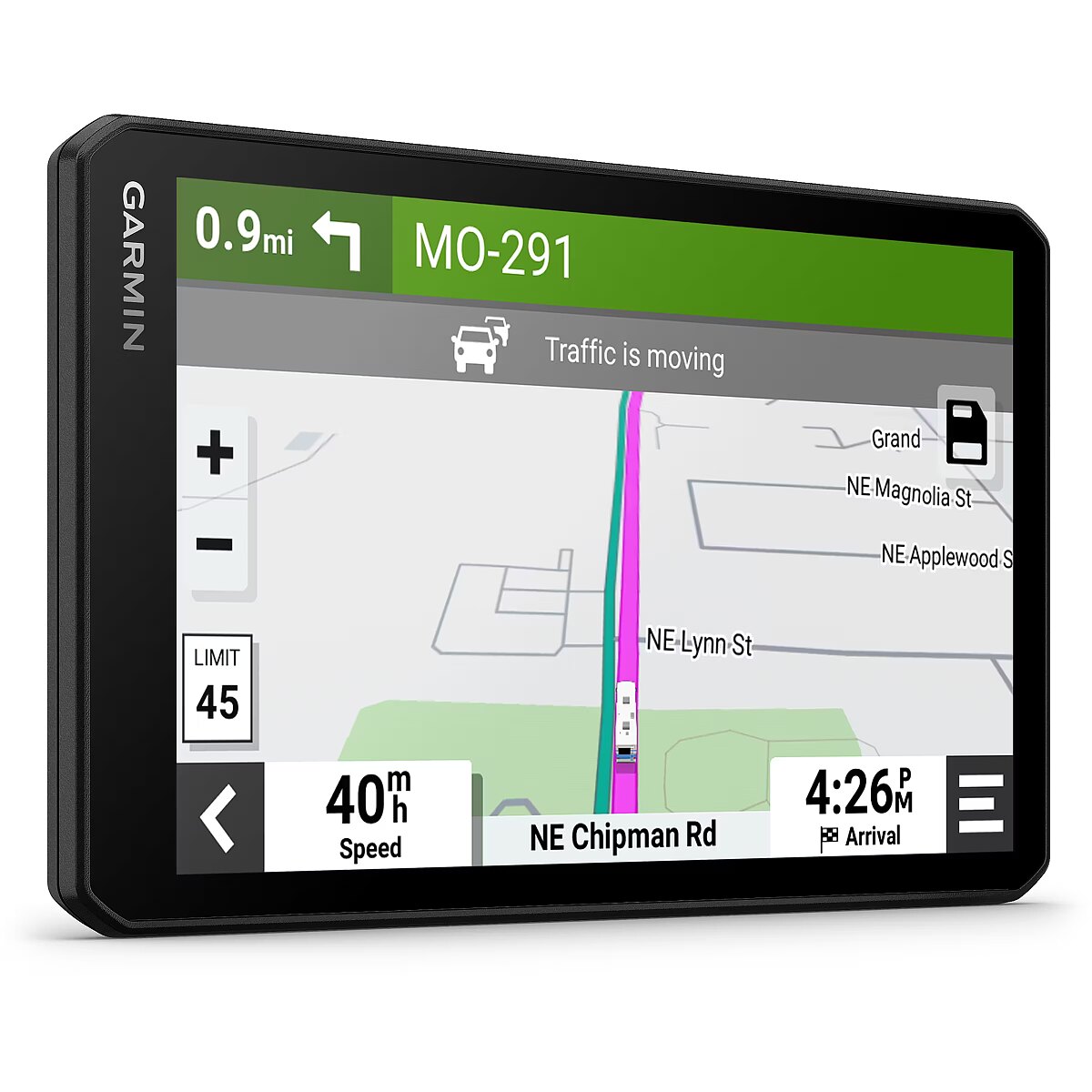 Väldi viivitusi ja leia aega säästvaid marsruute, kasuta reaalajas liiklusteavet, kui seade on töötava rakendusega ja ühilduva Garmin Drive’i nutitelefoniga (BLUETOOTH ja GPS aktiveeritud) ühendatud. Samuti saad vaadata ilmateadet, hetketingimusi, animeeritud radarit ja tormihoiatusi. Hääljuhtimisega navigeerimine