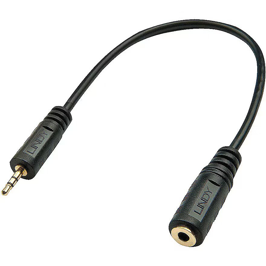 LongSummaryDescription - Lindy 2.5mm Male to 3.5mm Female Audio Adapter. Connector 1: 2.5mm, Connector 1 gender: Male, Connector 2: 3.5mm, Connector 2 gender: Female, AWG wire size: 28, Cable length: 0.2 m, Product colour: Black