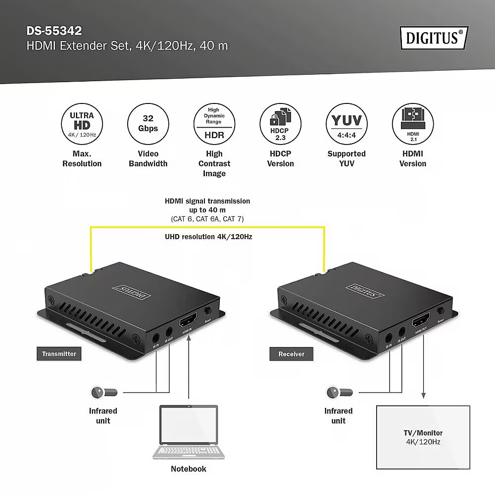 Name - Digitus HDMI Extender Set, 4K/120Hz, 40 m | DS-55342 | Black