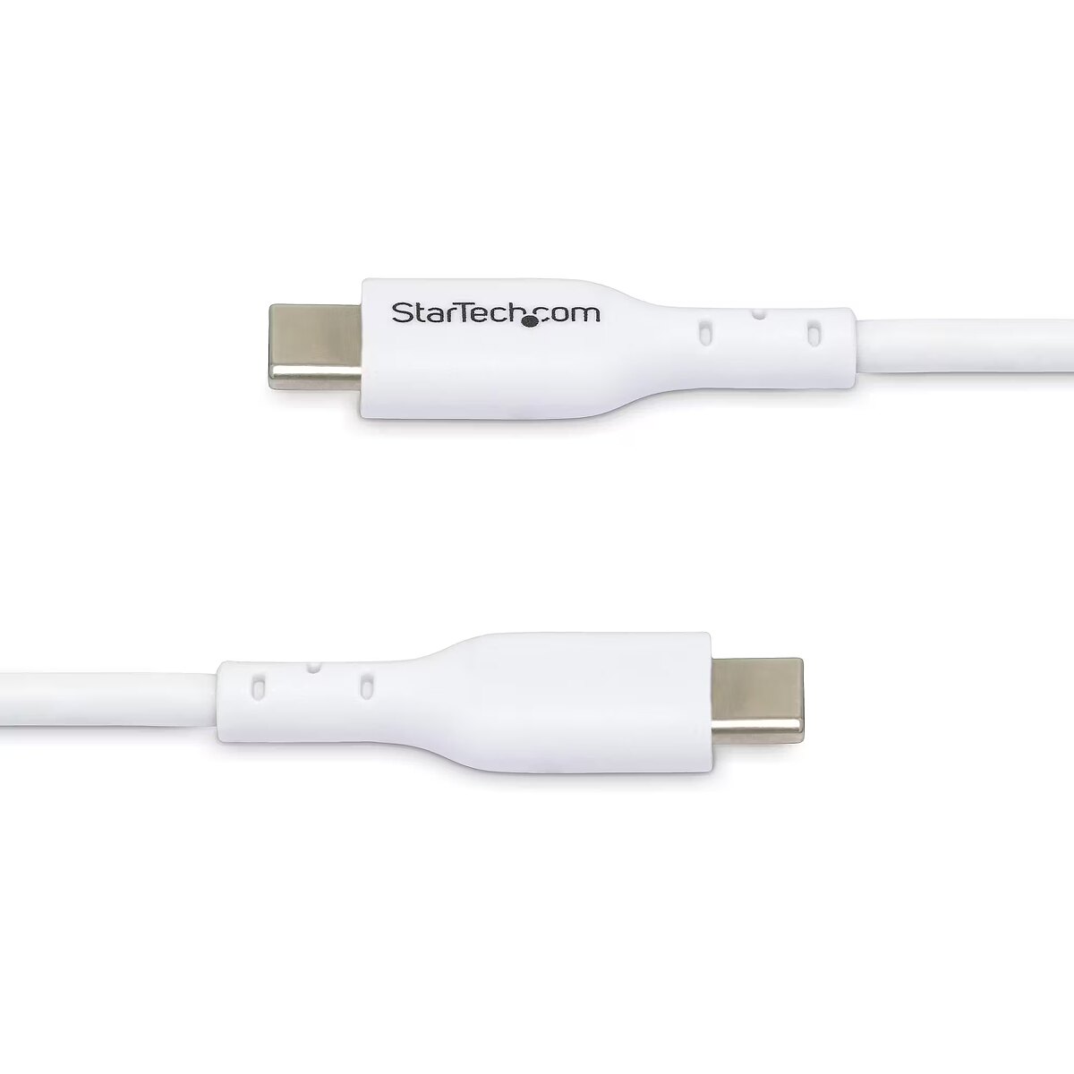 LongSummaryDescription - StarTech.com 1m (3.3ft) White USB-C Charging Cable, USB C Cable, USB 2.0 Type-C Laptop Charger Cord, 60W 3A Power Delivery, TPE Jacket, USB-C Data Transfer Cable, M/M. Cable length: 1 m. Connector 1: USB C, Connector 2: USB C, USB version: USB 2.0, Maximum data transfer rate: 0.48 Gbit/s, Connector contacts plating: Nickel, Product colour: White