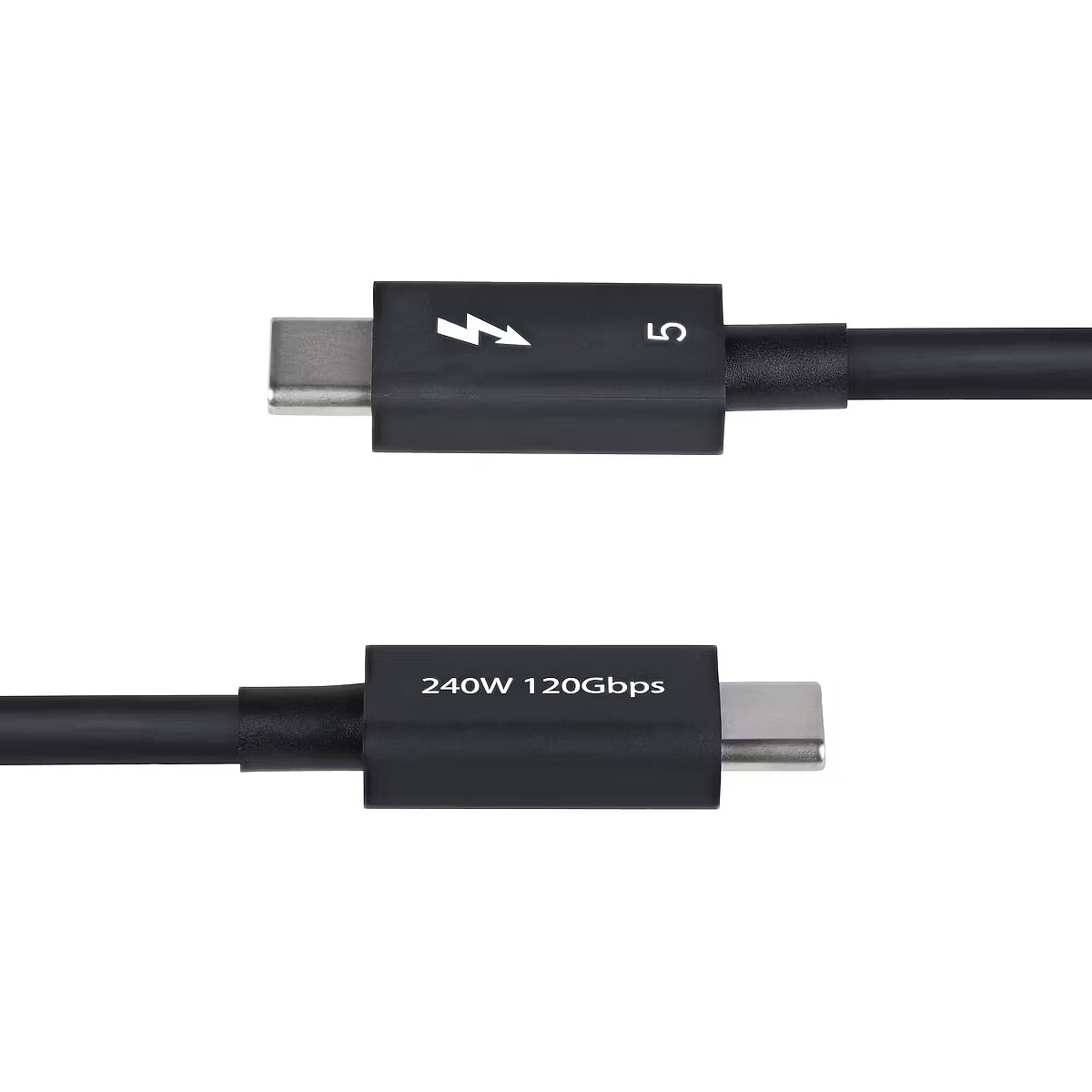 ShortSummaryDescription - StarTech.com 3ft (1m) Thunderbolt 5 Cable, 80Gbps/Up to 120Gbps, 240W PD, 8K 60Hz, Certified Thunderbolt Cable - Compatible w/Thunderbolt 4/USB4/USB-C, Male, Male, 1 m, Black, Nickel, 80 Gbit/s