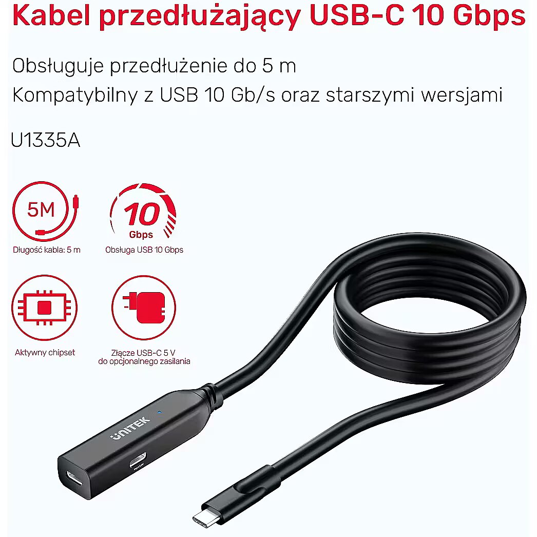 ShortDescription - Unitek Kabel przedłużający USB-C 10 Gbps 5m, czarny