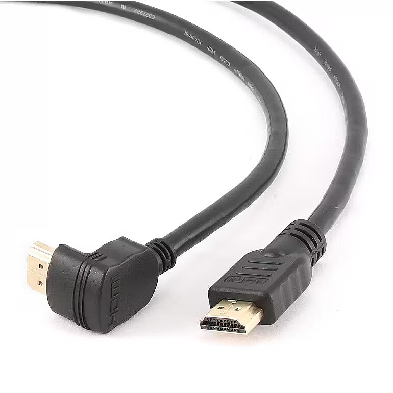 name - HDMI v2.0 90 degrees male to straight male connectors cable, 19 pins gold-plated connectors, 1.8m, bulk package