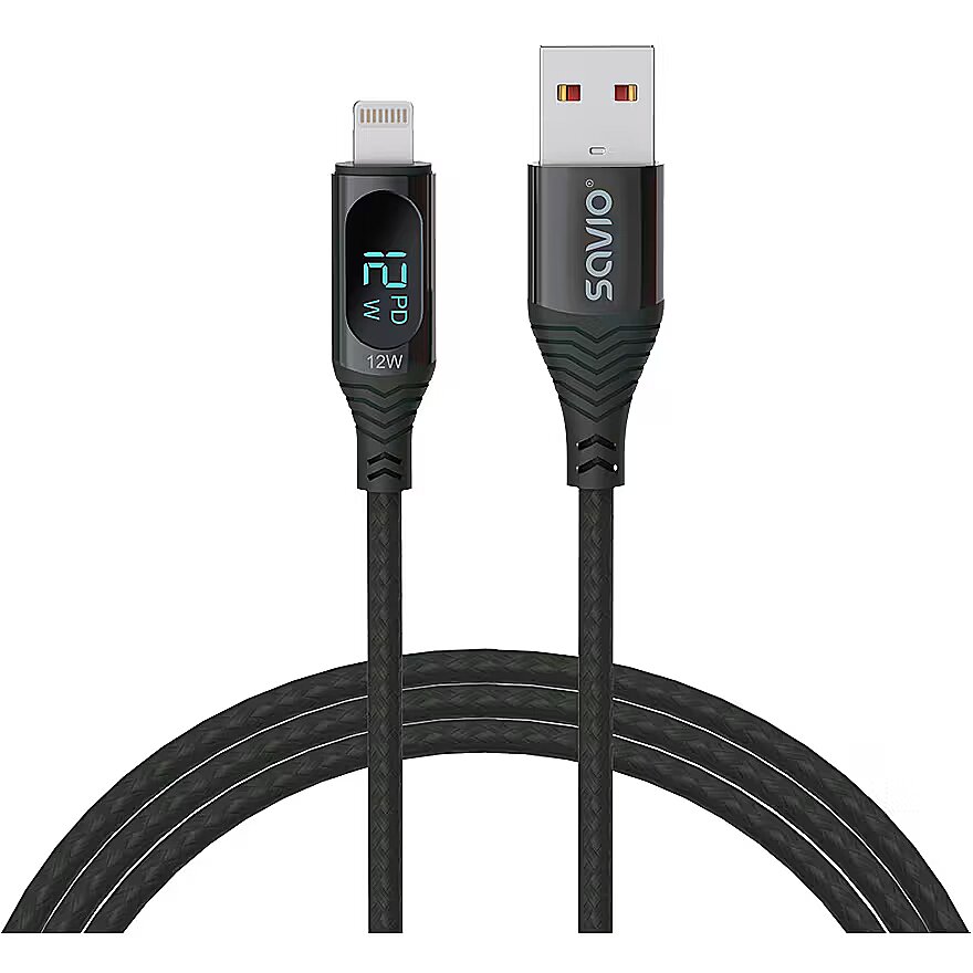 Name - Kabelis Savio USB-A Male - Lightning Male with Digital Display 1m