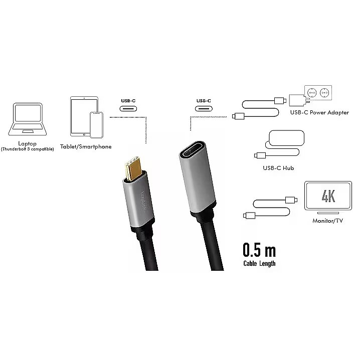 nosaukums - USB-C M/F kabelis, 4K/60Hz , alu, 0,5 m