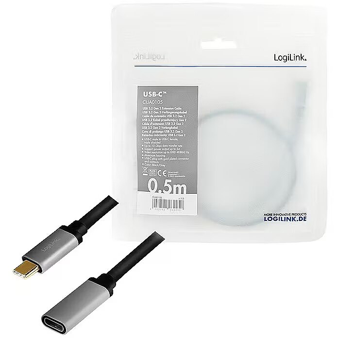 ShortDescription - USB 3.2 Gen2 Type-C M/F LogiLink pagarinājuma kabelis 0,5 m