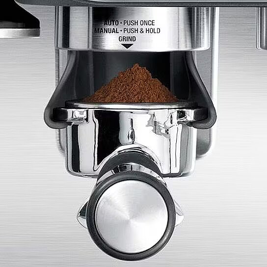 Innowacyjny uchwyt do mielenia umożliwia domowym baristom mielenie kawy bezpośrednio do kolby do espresso.
