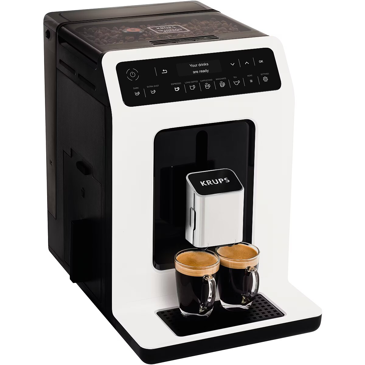 MediumDescription EN - Designed as the full package for perfect coffee drinks at home, the KRUPS Evidence automatic espresso machine produces flawless results down to the last detail. Create outstanding drinks from bean to cup with 15 different presets that cover all your favorites, with the KRUPS Quattro Force system for a difference you can taste and a sleek aesthetic that’s perfectly suited to any kitchen. • Fully automatic espresso machine -an outstanding home coffee experience down to the last detail, from bean to cup.