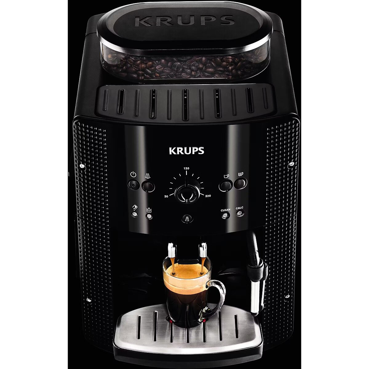 LongSummaryDescription - Krups EA8108. Product type: Espresso machine, Coffee maker type: Fully-auto, Water tank capacity: 1.8 L, Coffee input type: Coffee beans, Ground coffee, Reservoir for brewed coffee: Cup, Number of spouts: 2, Built-in grinder. Power: 1450 W. Product colour: Black