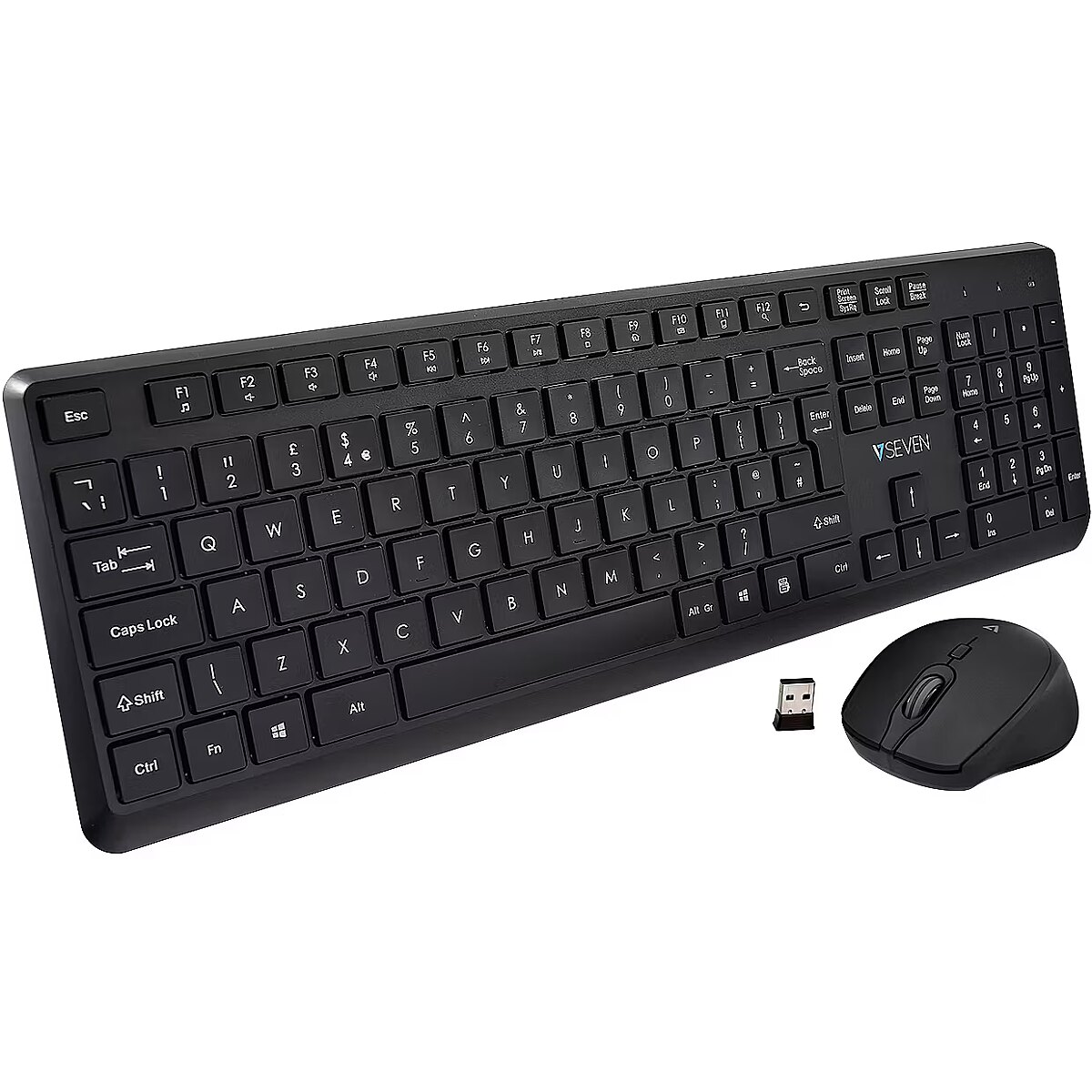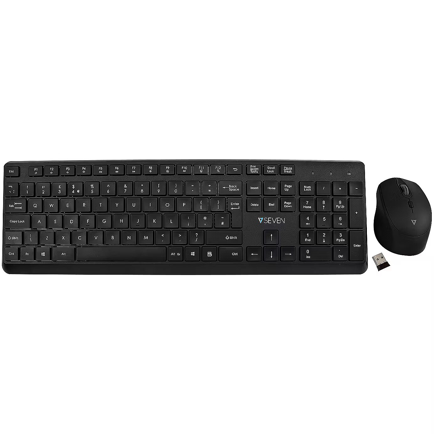 LongSummaryDescription - V7 CKW350UK Wireless Keyboard and Mouse Combo - UK Layout. Keyboard form factor: Full-size (100%). Keyboard style: Straight. Connectivity technology: Wireless, Device interface: RF Wireless, Keyboard layout: QWERTY, Keyboard number of keys: 106, Recommended usage: Universal. Product colour: Black. Mouse included