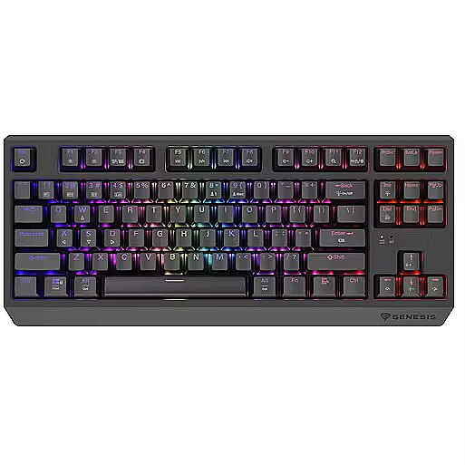 LongSummaryDescription - GENESIS Thor 230 TKL. Keyboard form factor: Tenkeyless (80 - 87%). Keyboard style: Straight. Connectivity technology: Wired & Wireless, Device interface: USB + RF Wireless + Bluetooth, Keyboard key switch: Mechanical, Keyboard layout: QWERTY, Keyboard number of keys: 87. Backlight type: RGB LED. Cable length: 1.6 m. Recommended usage: Gaming. Product colour: Grey