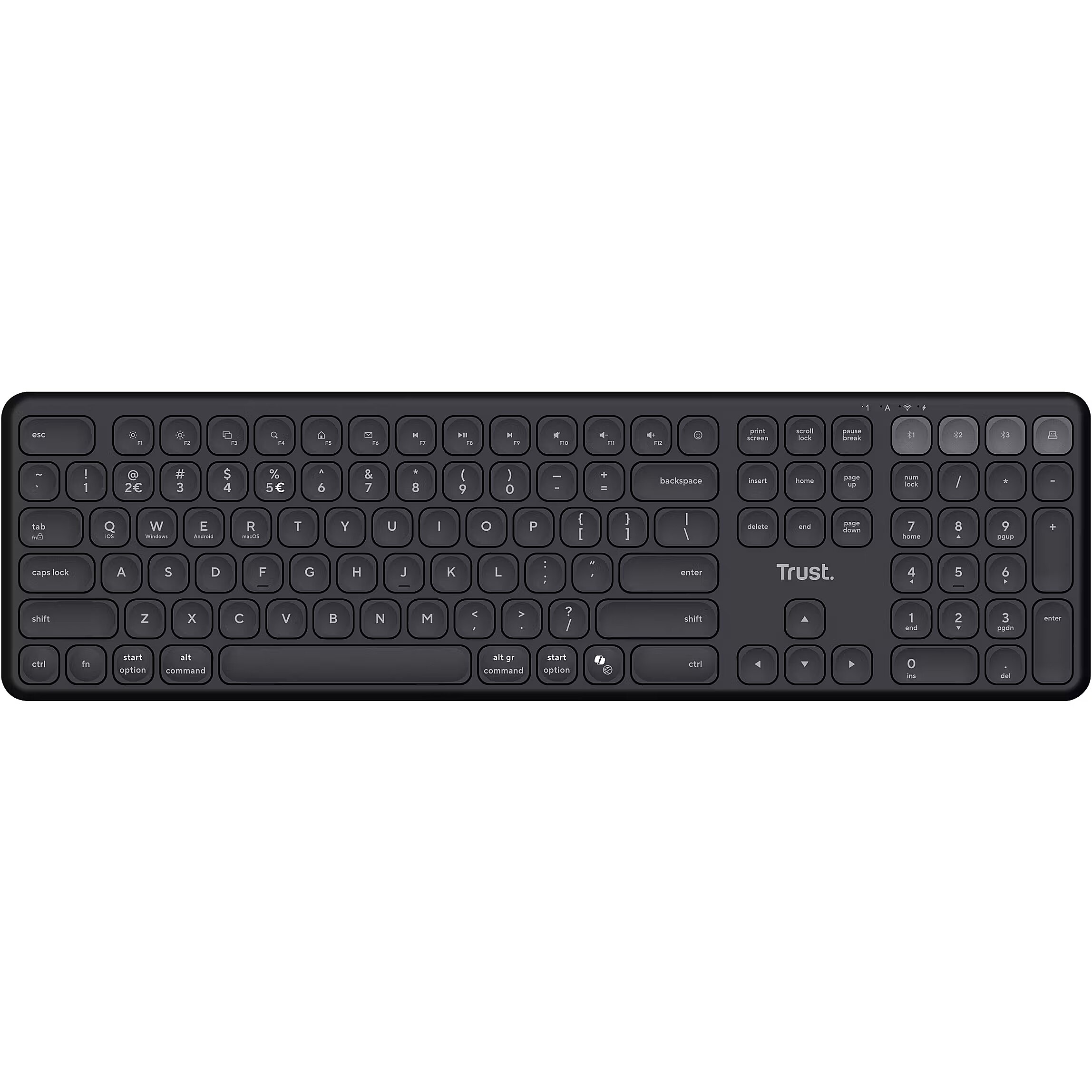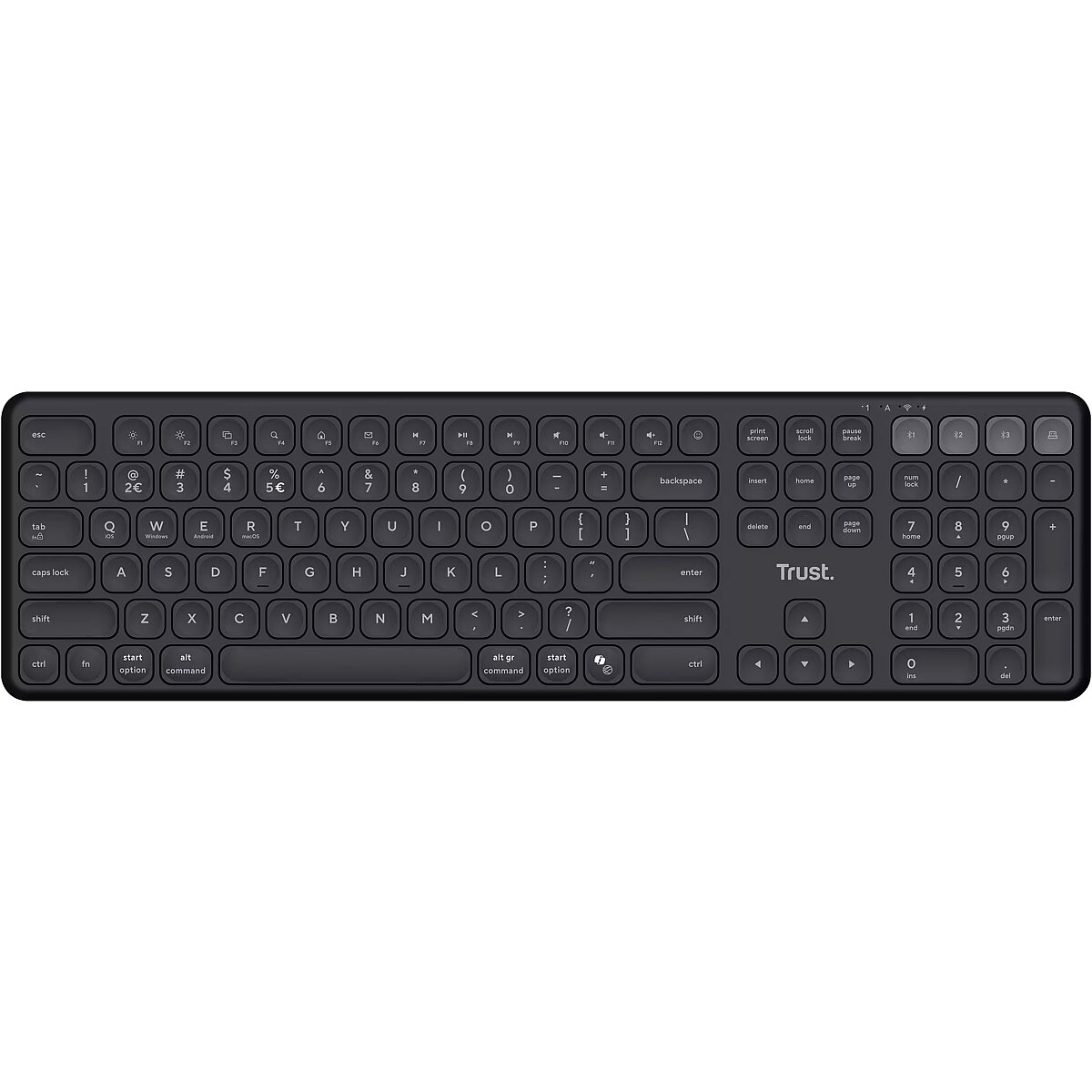 LongSummaryDescription - Trust Vaiya. Keyboard form factor: Full-size (100%). Keyboard style: Straight. Connectivity technology: Wireless, Device interface: RF Wireless + Bluetooth, Keyboard layout: QWERTZ, Recommended usage: Home/Office. Product colour: Black