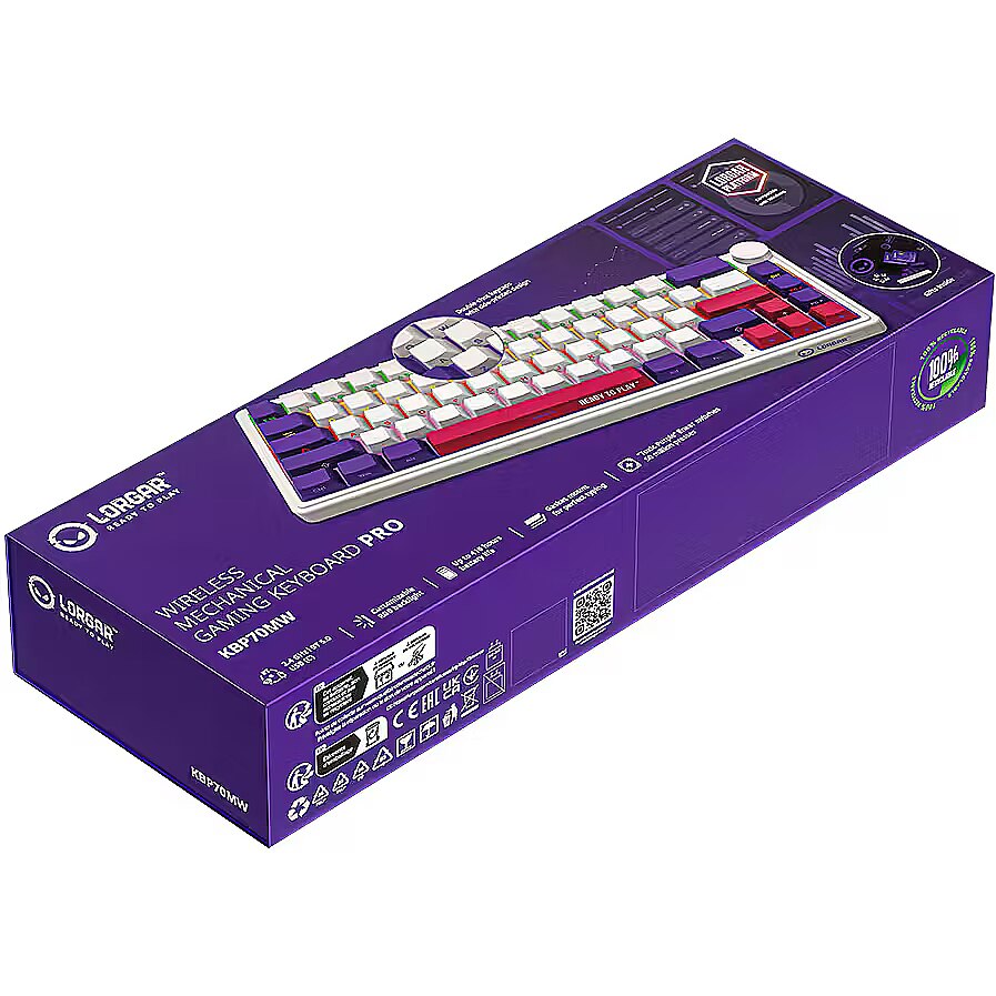 Produkta apraksts - LORGAR KBP70MW, bezvadu 65% mehāniskā spēļu klaviatūra Pro, balta, EN izkārtojums